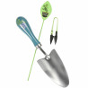 Coffret cadeau jardinage comprenant une petite pelle, une jolie étiquette en métal et une cisaille idéale pour bonsaï ou topiaire.