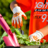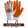 Une paire de gants de jardinage orange et blanc "Gaston l'Hérisson" pour garçon et fille.